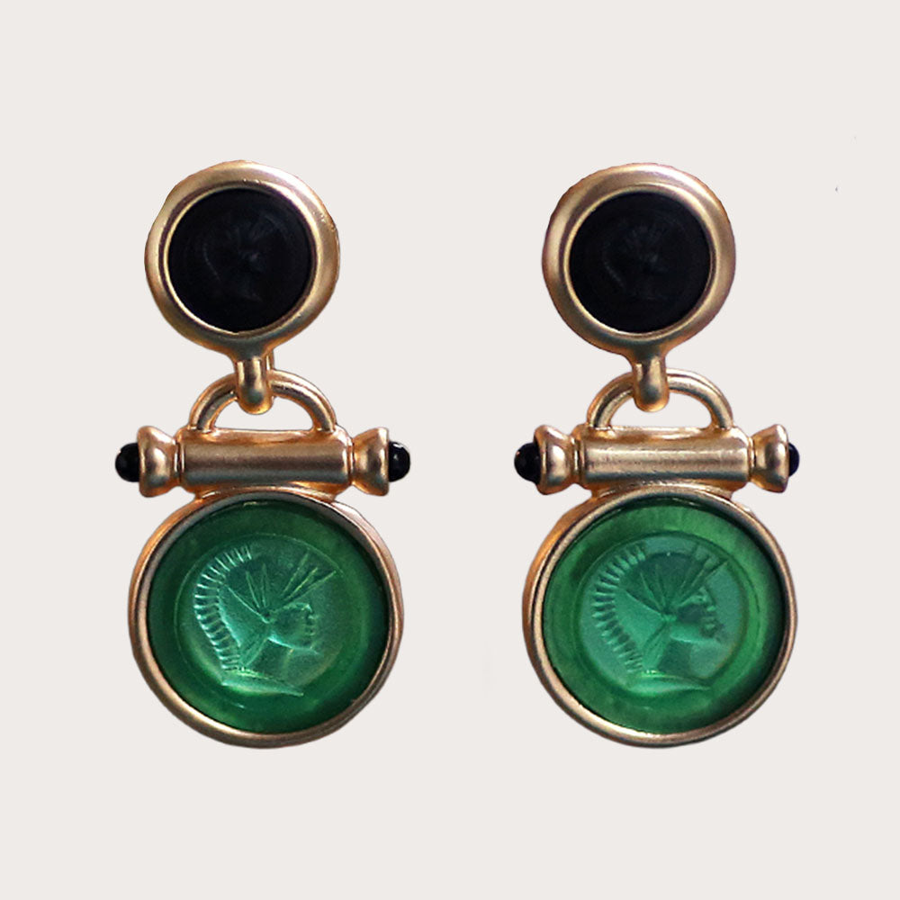 Jewel-Toned Drama: The Green Glazed Glass Cameo Dangles